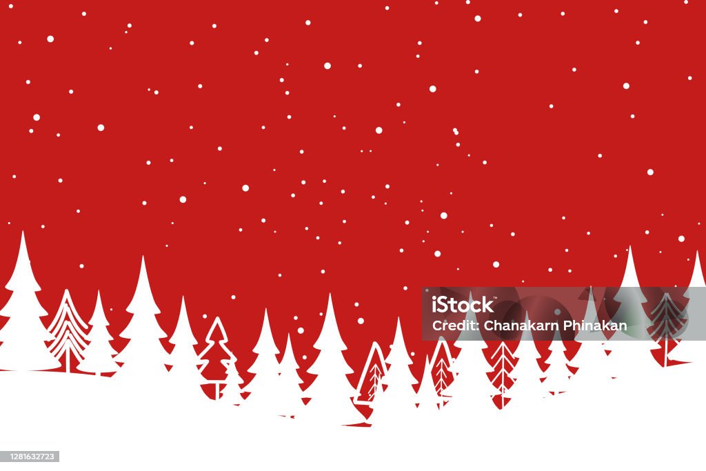 Merry Christmas With Christmas Tree On Red Background Stock