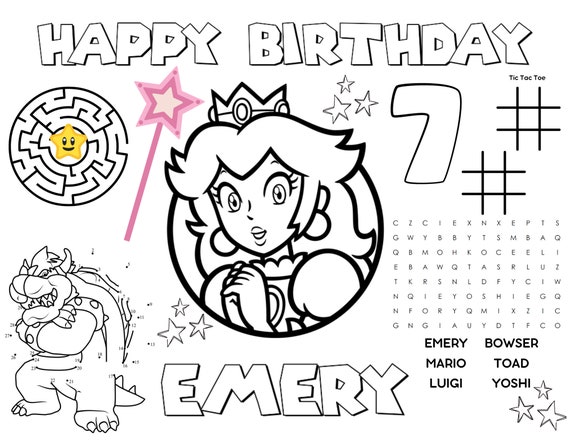 Princess Peach Super Mario Party Coloring Activity Sheet Etsy België